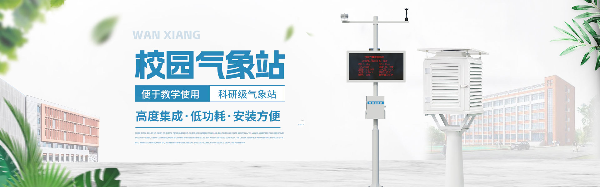 山東萬象環(huán)境科技有限公司官網(wǎng)主要產(chǎn)品有防爆氣象站,校園氣象站,農(nóng)業(yè)氣象站,負(fù)氧離子監(jiān)測(cè)站,超聲波氣象站,歡迎咨詢15666889815!